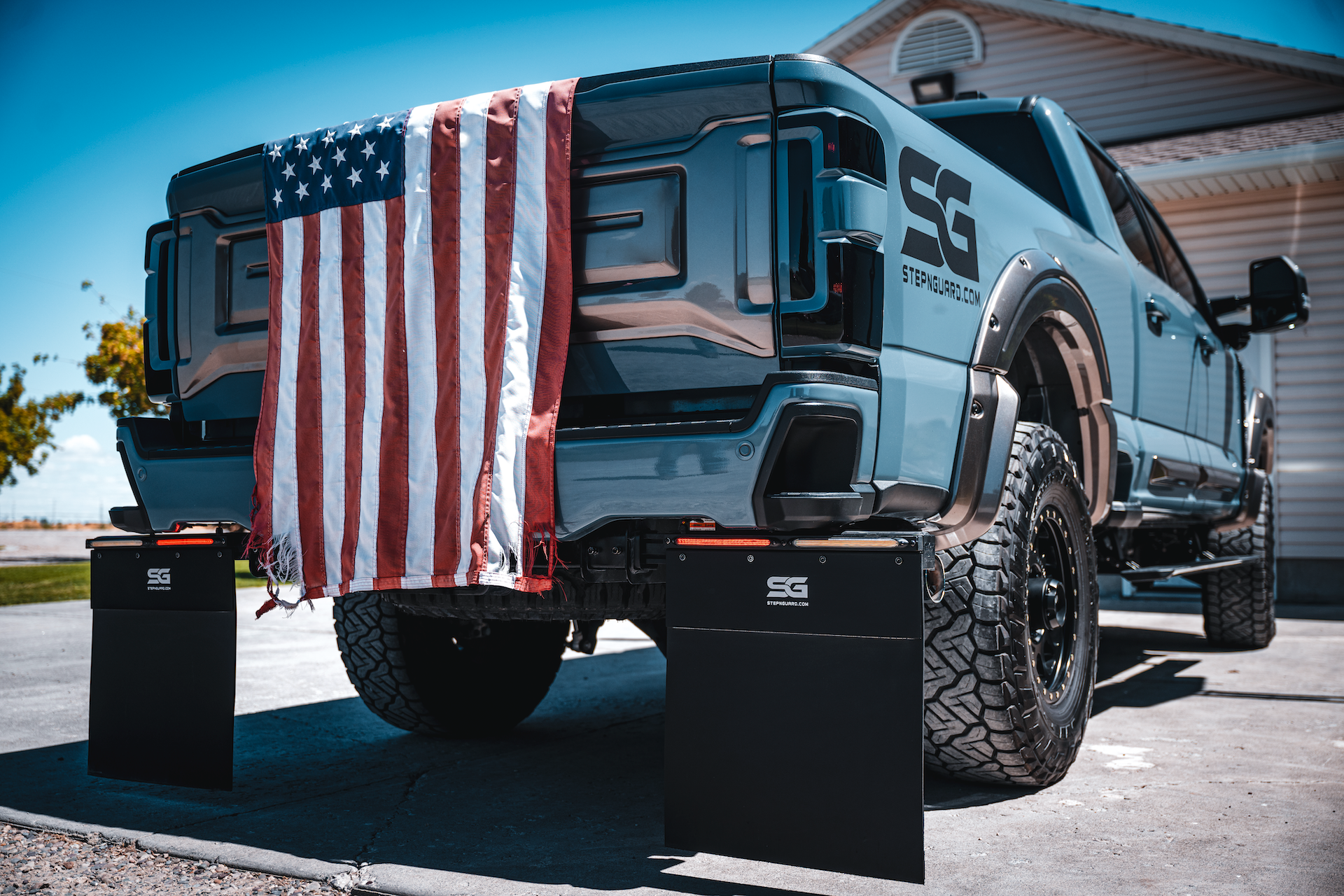 Made in America, Step N Guard is the first-of-its-kind modular step and mudflap system designed to offer both heavy-duty mudflaps for maximum debris protection and a sturdy, integrated step for safe and easy truck bed access.