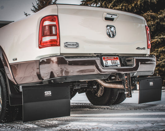 The Modular Flap System that isn't an afterthought, a revolutionary utilitarian design that allows our flaps to become a part of the OE hitch and frame. The System offers a unique step allowing ease of access to your bed while maintaining structural integrity of our system and protecting your towables from road debris and the elements. Mounts directly to your existing hitch using our patented design and doesn't interfere with your vehicles sensors. We guard your assets like they're ours!