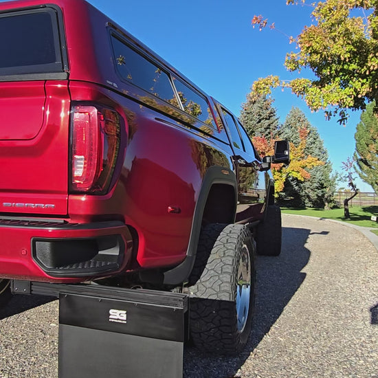 The Step N Guard Modular System for Chevrolet and GMC HD DUALLY Trucks isn't an afterthought. It's a revolutionary utilitarian upgrade that becomes a part of your truck's OE hitch and frame. Unlike standard mud flaps, our system provides a level of structural integrity that's unmatched. The design is so innovative it's protected under U.S. Patent No. 12,319,355 B2.